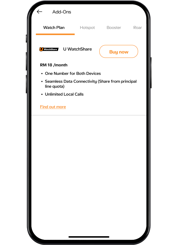 Important Note : Watch Plan is available for U Postpaid 68 and above. Please ensure you have the right Postpaid Plan and an available U FamilyShare line before proceeding.
