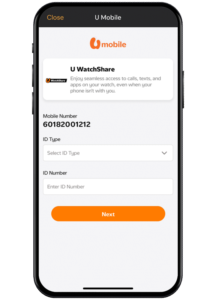Input your details in the U Mobile Watch Plan to check if you have an existing WatchShare Plan.