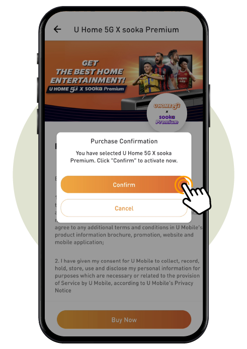Locate the 'U Home 5G x sooka Premium' banner in the homepage or find it under Featured Service, then tap ‘Buy Now' to proceed to the product page.