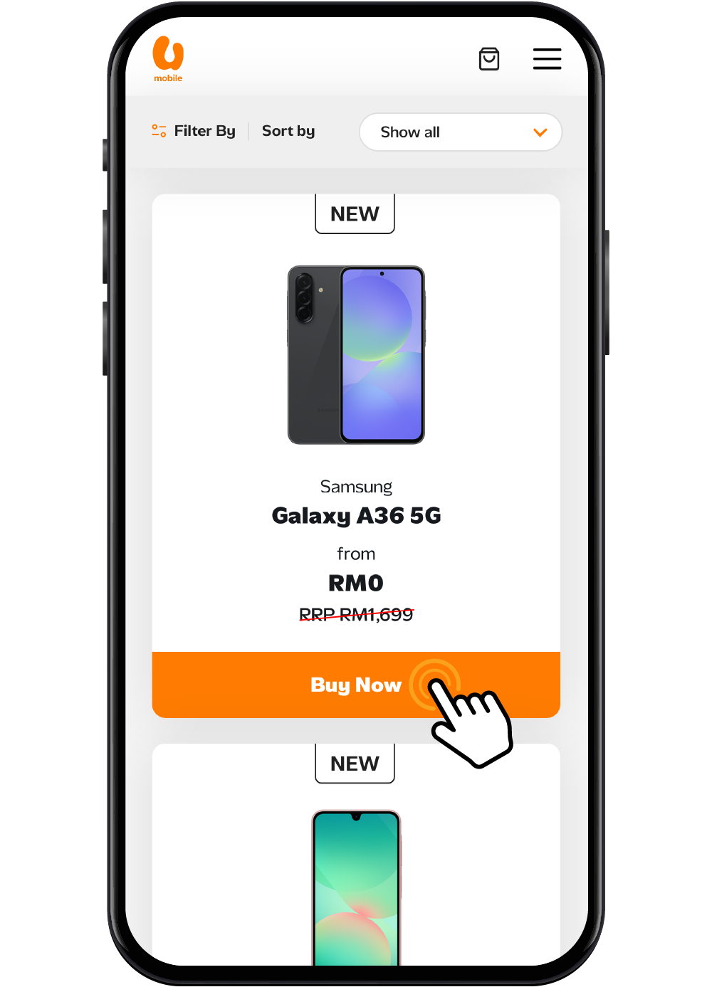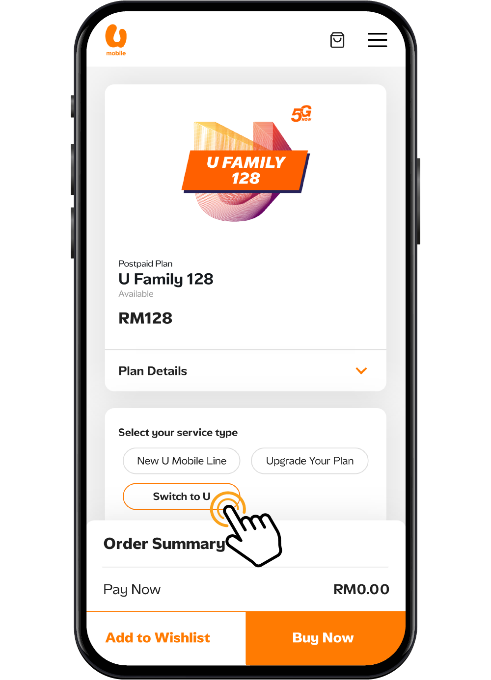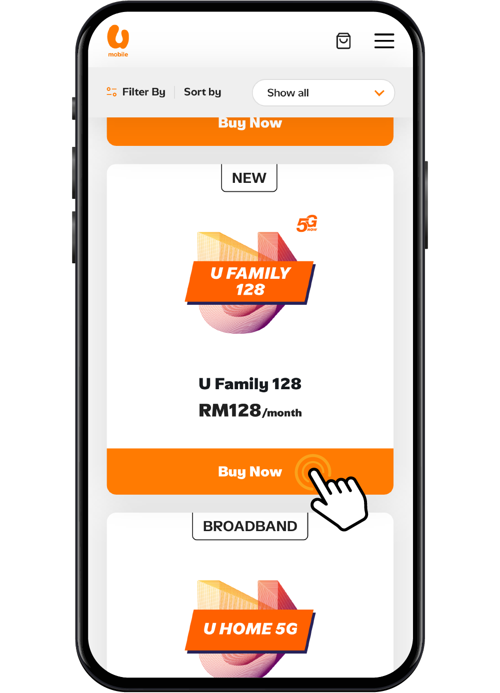 前往 U Mobile 的网店,选择您心仪的后付或预付配套。