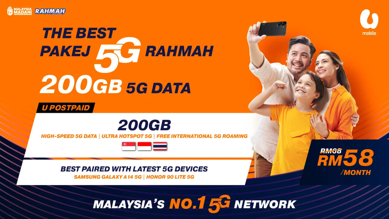 The upgraded U Postpaid 68 is also offered as part of the government’s Pakej 5G RAHMAH and Insentif Pascabayar RAHMAH Penjawat Awam initiatives for a special price of RM58 monthly.
