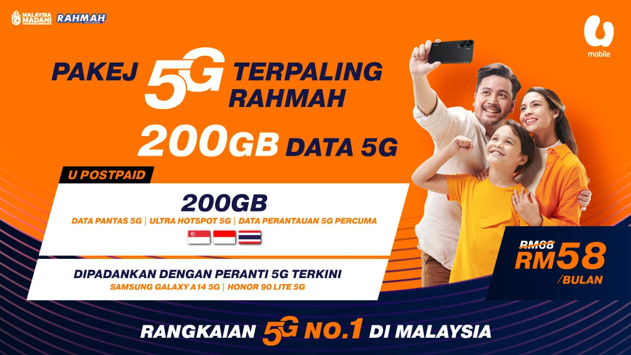 Pelan U Postpaid 68 yang dinaik taraf ini juga merupakan sebahagian daripada inisiatif Pakej 5G RAHMAH dan Insentif Pascabayar RAHMAH Penjawat Awam yang dianjurkan oleh kerajaan pada harga istimewa RM58 sebulan.