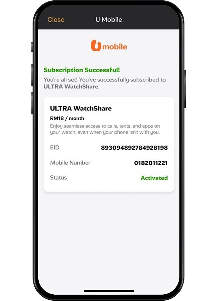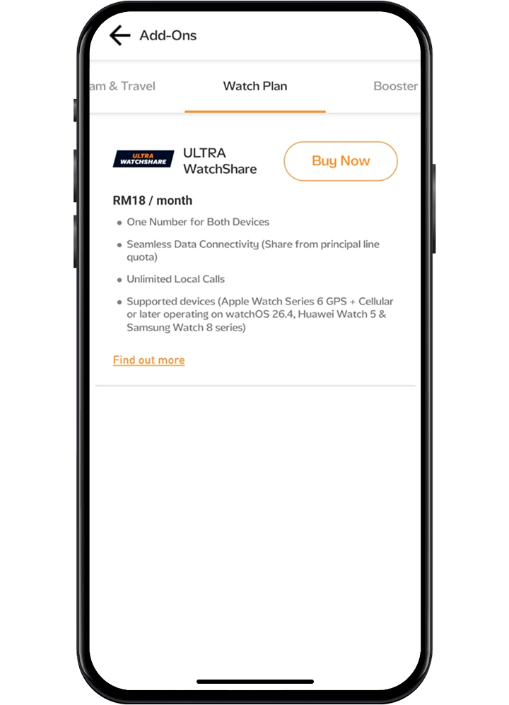 Important Note : ULTRA WatchShare is available for ULTRA Postpaid 45 and above. Please ensure you have the right Postpaid Plan and an available share plan before proceeding