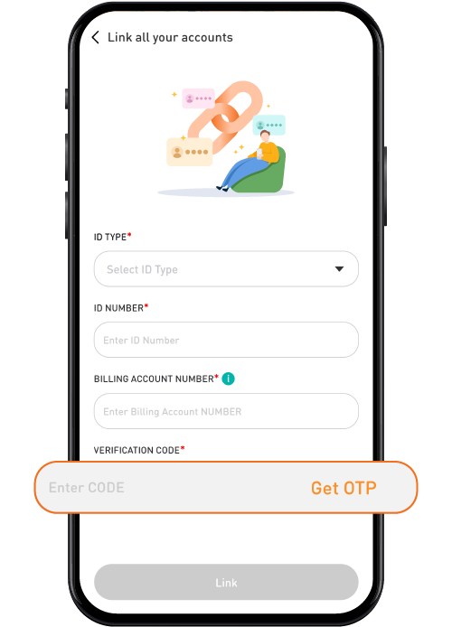 Fill in the necessary details and complete an OTP Verification to successfully link all your accounts.