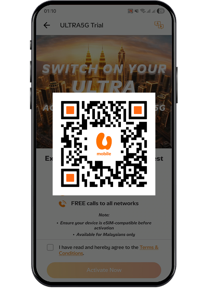 The Free ULTRA5G Trial is exclusively available to eligible customers with a valid MyKad, MyKas, MyPR or MyTentera. This offer is only available to new customers who do not have any existing mobile lines with U Mobile.