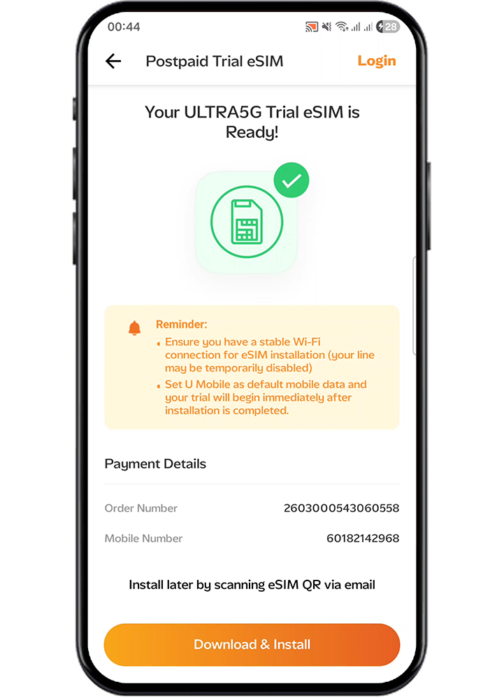 The Free ULTRA5G Trial is only available in eSIM format and can only be used on eSIM-enabled devices. Please check your phone’s compatibility before redemption. Ensure your MyUMobile App version is updated to v.3.13.11 or newer before registration.